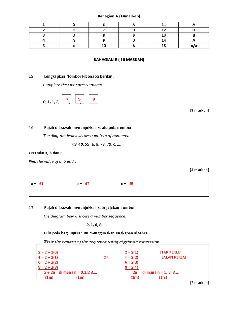Ujian Matematik Tingkatan 1 Skema Jawapan